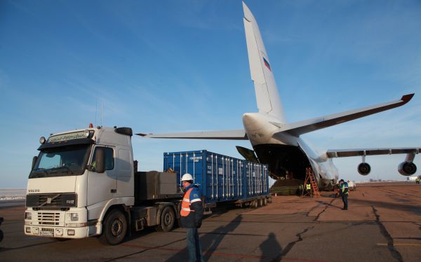 Первая партия спутников британской компании OneWeb в понедельник прибыла на самолете Ан-124-100 на космодром Байконур